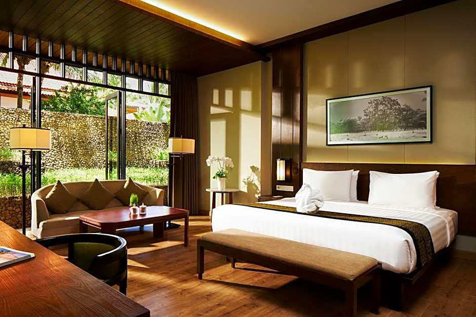 Stay in our stunning One-Bedroom Villa, offering a spacious 635 sqft of luxury. With a king size bed, private balcony, garden view, and a range of modern amenities including a bathtub and flat-screen TV, your stay with us will be a truly unforgettable experience.